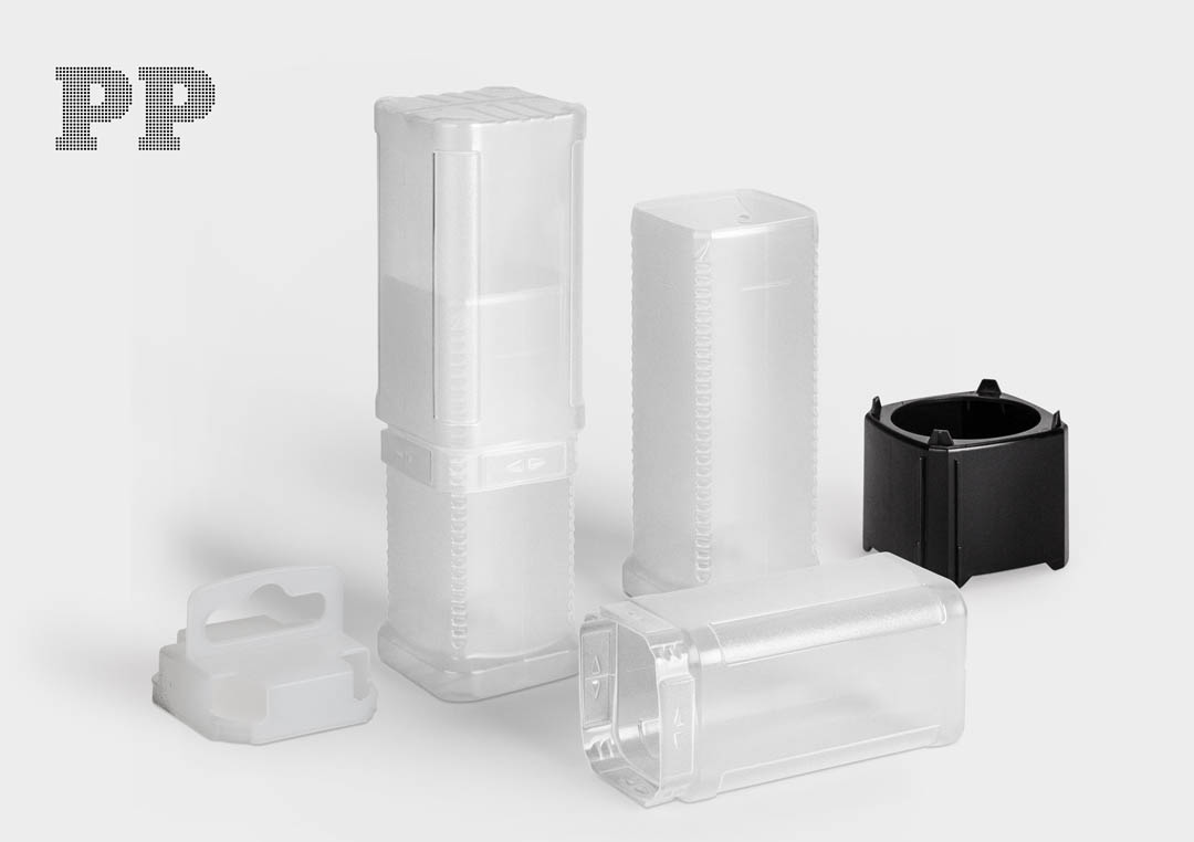 - PE naturale, PP trasparente o diverse colorazioni standard e bi-colori